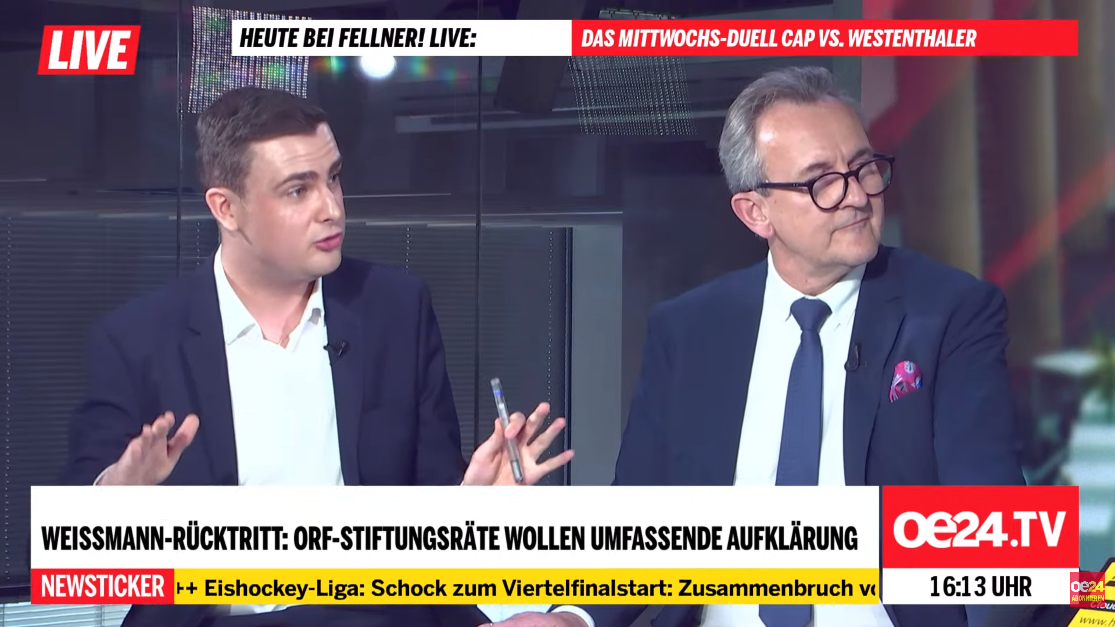 Schlammschlacht im ORF: Für Journalist Ammann und Anwalt Mag. Beneder ein klares Signal, dass das parteipolitische System des öffentlich-rechtlichen Rundfunks ausgedient hat. Sie fordern die sofortige Ausarbeitung von Maßnahmen zur Privatisierung des ORF. Die Gründe für die Forderung erläutern sie im Interview mit oe24TV.